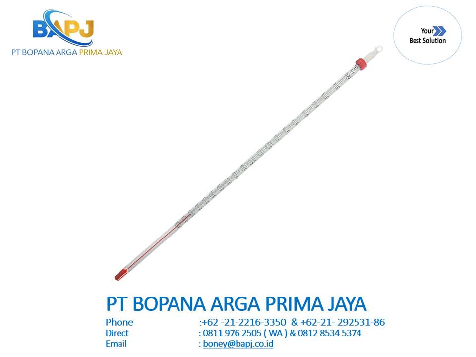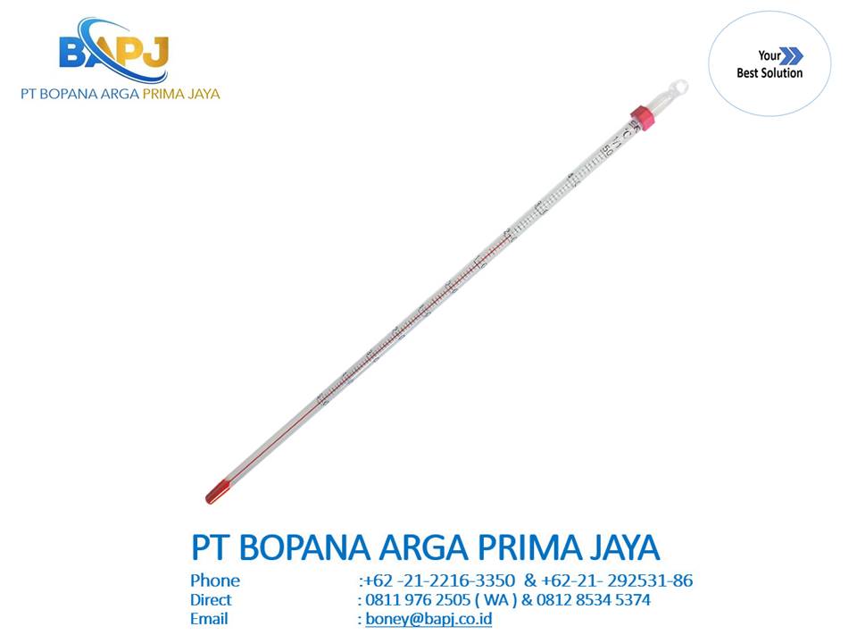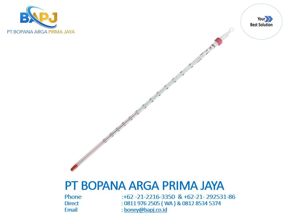 No.0290-10 Alcohol-filled Etched-stem Thermometer, 0 to 200°C, 30 cm in Blister Pack