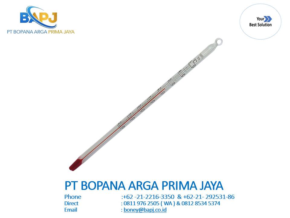 No.0220-10 Alcohol-filled Etched-stem Thermometer, 0 to 50°C, 30 cm in Blister Pack
