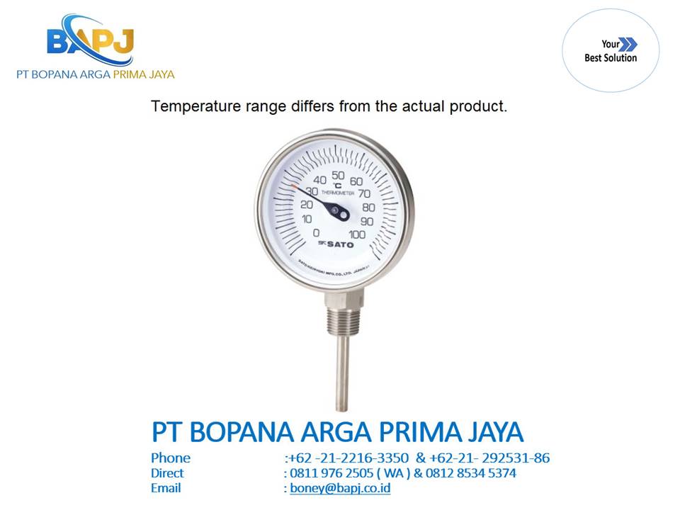 No.2030-20 Bimetal Thermometer, −30 to 50°C, 60 mm Stem BM-S-90S