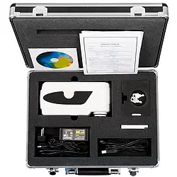 PCE-CSM 7 is a portable brightness tester used to measure different spectral parameters. This user-friendly, ergonomically designed color meter automatically performs a white and black calibration when powered on. Suitable for manufacturing quality control as well as product research and development, the color meter offers impressive measuring accuracy and comes manufacturer calibrated. An optional ISO calibration certificate can be acquired for an additional fee. Useful for determining color difference, chromaticity index, color sample database management, and color difference cumulative analysis. Integrated camera and illumination locating helpful for small samples.
