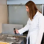 The temperature meter PCE-IR 80 is used to quickly control the temperature of food. The temperature meter is used in the area of canteen kitchens, catering services, refrigerated warehouses and warehouses. The temperature meter has two types of measurement. On the one hand, the PCE-IR 80 temperature meter can measure the temperature of the object without contact via infrared. Here the measuring range is -35 ... 330°C / -31 ... 626°F. The emissivity of the temperature meter is adjustable, so that always best measuring results can be achieved.