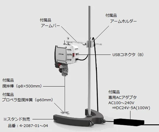 • The stirring bar can be loosened by lowering the lever type chuck, and the stirring bar height can be changed smoothly (no need for separate parts).