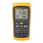 The Fluke 53 II single input digital thermometer delivers fast response with laboratory accuracy (0.05% + 0.3°C). And it logs up to 500 points of temperature data to internal memory. You can use the 53 II to measure contact temperature on motors, insulation, breakers, pipes, corroded connections, liquids, and wires with industrial standard J, K, T, E, N, R, or S-type thermocouple temperature sensors. The user-friendly-front panel and large, backlit display make it easy to view results and recall logged data for further review. And the sleep mode feature preserves battery life to give you a typical thousand hours of operation.
