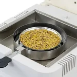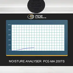 The absolute moisture meter has a measuring range of 0 ... 100% absolute humidity. The absolute moisture meter is operated via the 5" large touchscreen. To measure the moisture content with the absolute moisture meter, a sample is evenly distributed on the sample pan. The sample pan is then placed and sealed in the absolute moisture meter. After setting all parameters, the absolute moisture meter begins the measurement.