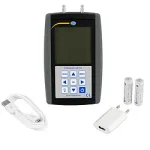 The air flow meters of the PCE-PDA series are reliable differential pressure gauges for pressure measurement of gases in the range of ± 200 kPa, ± 2 kPa and 20 kPa depending on the model. The air flow meter has many different pressure measuring functions. This gives the user more than 16 units. Furthermore, the air flow meter measures in addition to the differential pressure, the temperature, flow velocity and volume flow. In addition, the maximum and minimum differential pressure can be displayed in the two-part graphic display. The resolution of the differential pressure can optionally be switched. The air flow meter incorporates a high-precision mode that increases the resolution tenfold.
