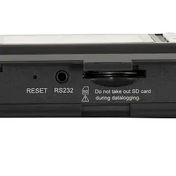 The air humidity meter is used to measure air quality. The air quality meter measures carbon dioxide, temperature and humidity. The CO2 sensor from the air quality meter is separated from the main unit with a connection cable. The measured values are displayed on the large display of the air quality meter. The air quality meter data is stored on an SD card. The air quality meter can set the measured data in adjustable intervals of 1 ... 600 seconds.