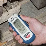 Measures moisture content of wood, paper, textiles, concrete and other building materials - also measures ambient temperature and relative humidity