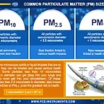 Of greater importance is the degree of pollution of the air with pathogenic particles such as soot, which are released by the industry and especially by diesel vehicles without special filtering in the air. Such dispersion particles are responsible inter alia for reduced visibility, the inhalation of toxic substances and thus reduced labor productivity. It has also been known for some time that the particles also make a not inconsiderable contribution to many medical diseases such as asthma, bronchitis, skin and lung diseases. The particle counters are designed for easy and quick use. The particle counters of the PCE-PQC 1xEU series operate in different modes (real-time, cumulative, differential, mass concentration, ...) and display the results on the display,