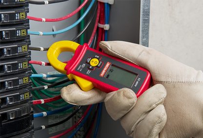 With a full range of AC/DC current, AC/DC voltage, and frequency measurement functions for basic electrical troubleshooting, the AMP-220 clamp meter with its large backlit display is an excellent amp clamp meter choice. Rated CAT III 600 V, the AMP-210 clamp meter offers True-RMS sensing, fast response processor, non-contact voltage detection, capacitance, resistance and continuity measurements to enhance efficiency and safety in today’s complex electrical environments. The Amp-Tip function allows for precise measurement of current down to the tenth of an Amp, enabling accurate current measurement of both large and small diameter wires. A low pass filter allows measurement of current and voltage on variable frequency drives (motors with speed controlled by frequency).