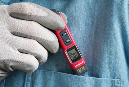 A must have tool for everyday applications, the Amprobe IR-450 3-in-1 Infrared Pocket Thermometer, Laser Pointer, and Flashlight offers a uniquely small and convenient form factor with professional 8:1 distance to spot ratio, a high-quality laser pointer and LED flashlight. Much more portable than traditional infrared thermometers, the IR-450 Infrared Pocket Thermometer can be readily for quick diagnostic checks in a wide variety of applications including: HVAC/R, fire safety and protection, industrial maintenance, automotive and quality control.