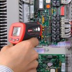 The Amprobe IR-710, a 10:1 spot to distance ratio infrared thermometer, offers best in class accuracy and response time with a temperature measurement range of 0 °F to 716 °F (-18 °C to 380 °C). The IR-710 is specifically designed for HVAC/R, electrical, industrial maintenance, automotive as well as quality control and fire prevention applications.