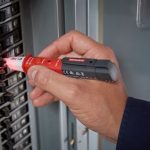 The Amprobe NCV-1040 Non-Contact Voltage (NCV) tester provides maximum safety and convenience for detecting AC voltage without interrupting electrical systems. Designed to conveniently fit in your shirt pocket, the NCV-1040 tester performs in indoor and outdoor settings. Safety tested to the highest category measurement, CAT IV 1000 V, as well as IP65 water and dust resistant, the NCV-1040 is fit for the toughest industrial applications.