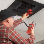 The Amprobe TMA40-A provides three measurements in one: air velocity or volume, relative humidity and temperature. With three ways to view your measurement results, choose between single point measurement, multiple points up to 99, or the added feature of data logging up to 2400 data points. User sets the measurement interval time from 1 to 200 seconds. The TMA40-A has a flexible cord to position vane where you need to measure. For accurate CFM results, the user simply inputs the area of the air source.