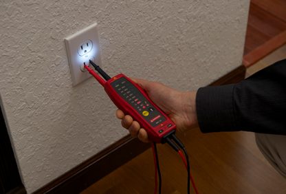 Amprobe’s hand-held residential and commercial Voltage and Continuity Tester is loaded with safety, time-saving and accuracy features. It allows you to quickly troubleshoot voltage and continuity for residential and commercial applications using visual, audible and tactile alerts.
