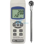 Lutron AM-4233SD is an anemometer with external probe, that can measure gas flow rate in range 0,4 - 20,0 m/s and temperature in range 0 - 50 °C.