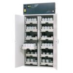 Lemari penyimpanan dengan filter udara sirkulasi untuk penyimpanan asam dan basa serta ekstraksi dan filtrasi uapnya.