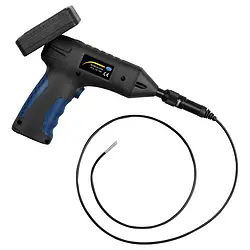 The automotive tester PCE-VE 180 is a rechargeable handheld pistol-grip videoscope or video borescope inspection camera with video recording and image capture functionality. Equipped with built-in LED lighting on the waterproof camera tip, the PCE-VE 180 borescope features a detachable remote control with integrated 3.5" LCD for easy viewing and navigation. The remote control communicates using radio transmission at 2.4 GHz. The borescope is powered by a rechargeable battery that allows for up to 3 hours of continuous use. Recorded images and videos are saved to a MicroSD memory card with a capacity of up to 32 GB. The semi-flexible gooseneck cable of the borescope has a small diameter of just 3.9 mm / .16 in for insertion into tiny cavities. An IP67 ingress protection rating protects the borescope against dust and water, allowing for use in adverse conditions. The borescope comes with three different attachments: a 90 ° angle mirror for viewing side walls and around corners, as well as a hook and a magnet for pulling parts out of cavities.