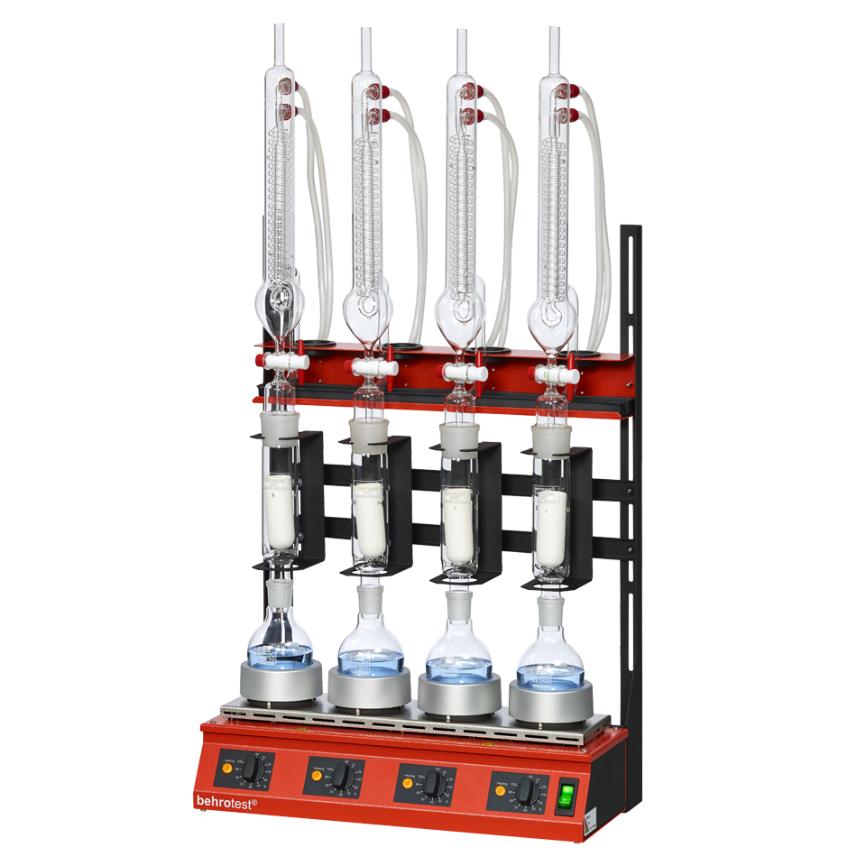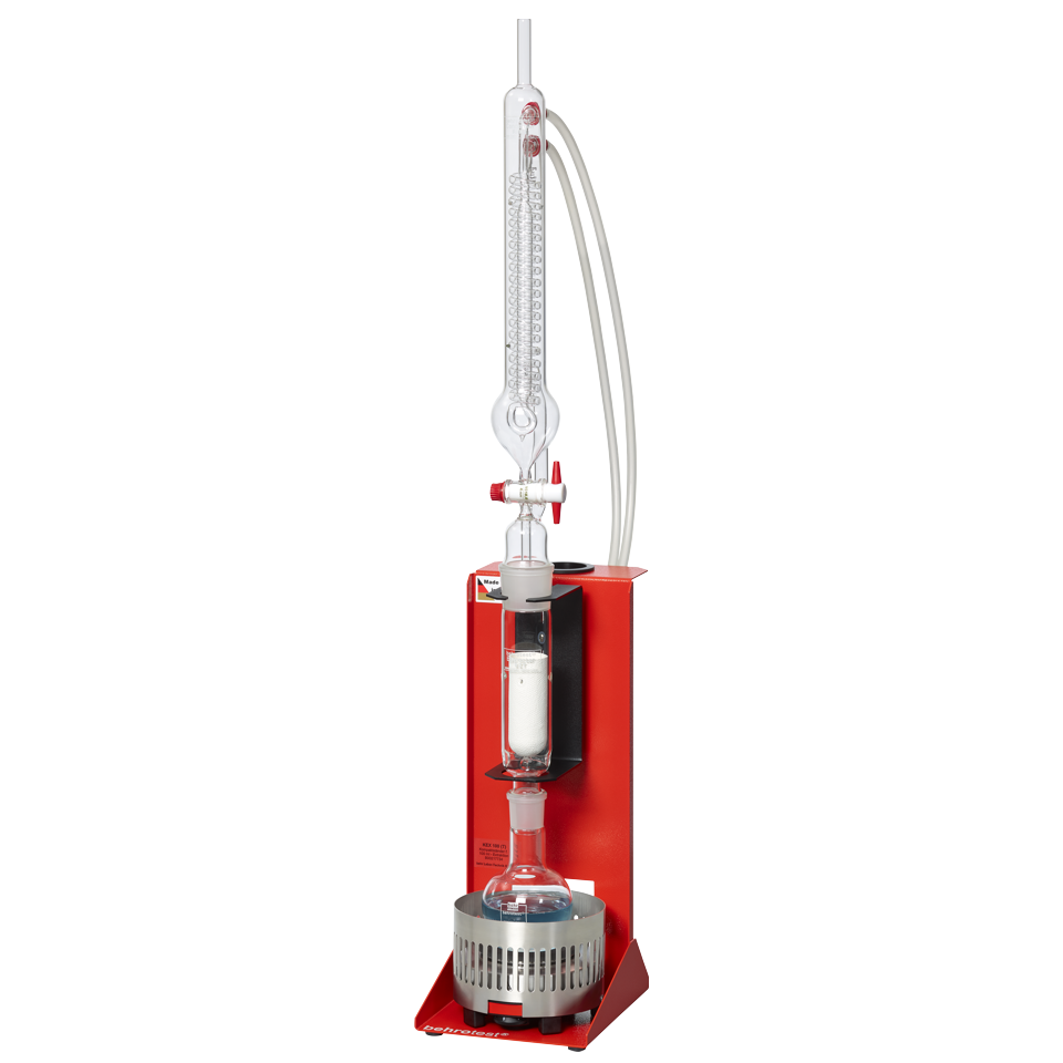 Kami menawarkan unit ekstraksi tunggal lengkap dengan rak, perangkat pemanas, penyangga, selang, dan peralatan gelas (labu reaksi, ekstraktor, kondensor Dimroth untuk ekstraksi). Selain itu, tersedia paket sampel yang mencakup pelindung ekstraksi dan batu didih.