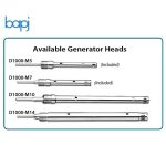 Generator probes are available in four sizes. The 5mm and 7mm diameter have a 50mm length for use with samples in microbtubes. The 10mm x 115mm is ideal for use with 15 and 50ml tubes and 14mm x 130 mm, for 50ml tubes and vessels up to 250ml. The unit is supplied with one each of the 5mm and 7mm generator probes. All the generator probes are made of stainless steel and can be sterilized by autoclaving.