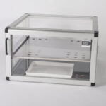 Big-Star-Desiccator Low dirancang dengan rangka aluminium yang kokoh dan panel akrilik. Dilengkapi dengan satu rak stainless steel, tray, dan higrometer, produk ini dapat digunakan dengan hingga 5 rak dan dapat ditumpuk. Desiccator ini ideal untuk penyimpanan produk besar seperti lembaran kertas atau botol gelas laboratorium standar hingga 1000 ml, berkat desainnya yang rendah.