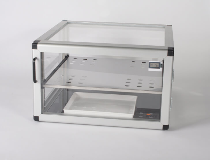 SICCO Desiccators dirancang untuk menyimpan atau mengeringkan produk yang sensitif terhadap kelembapan menggunakan silika gel. Pintu yang rapat melindungi isinya dari kontaminasi atmosfer. Lingkungan yang terkontrol di dalam desiccators ini sangat ideal untuk menyimpan bahan referensi, sampel yang disimpan, spesimen metalografis, tembakau, dan sampel DNA. Produk ini sangat cocok untuk penyimpanan produk lebar seperti lembaran kertas atau botol gelas laboratorium.