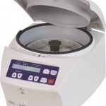 High-speed bench-top centrifuge for hematocrit determinations with brushless frequency drive. At 16.060 g sedimentation is completed in just a little over 6 minutes.