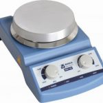 Motor drive Magnetic stirrer with aluminum hot plate for simultaneously stirring and heating of chemical reagents. „Hot-Surface" alert indicator light when the plate temperature exceeds 60°C