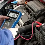 During the battery test with the car measuring device during the starting process of the car, the voltage drop of the battery is measured by the test device. The voltage difference provides information about the condition of the 12V or 24 V battery. In addition to checking the battery, the voltmeter can also test the alternator from the car. All measured values and test results are displayed on the LCD. The car measuring device uses Kelvin clamps on 70 cm long measuring leads to measure the battery voltage.