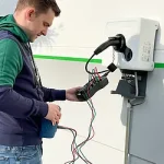 A charging cable not only contains the supply lines for charging an electric vehicle, but also two interfaces. The electric vehicle communicates with the charging station via the CP line (Control Pilot) and communicates the current status of the electric vehicle. The PP line (Proximity Plug) is used for communication between the connected charging cable and the charging station. The charging cable can thus tell the charging station how many amps it may be loaded with. To test both functions, the car measuring device is equipped with corresponding simulators.
