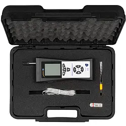 With the climate meter it is possible to measure climate conditions such as temperature and relative humidity, as well as determining surface temperature of objects simultaneously by using the included external temperature sensor or using an infrared measurement. The climate meter offers features such as average value, maximum, minimum, and hold functions. The climate meter provides additional information relating to dew point temperature and the global humidity temperature. Measurement values can be directly seen on the device's LCD display, and maximum and minimum values can be registered or transferred to a PC or portable computer for further analysis.
