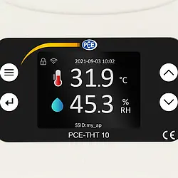 Analysis of the measured values recorded can be carried out with the software for the climate meter. If there are several thermo-hygrometers in a network, all of them can be controlled by the software at the same time. The thermo-hygrometer software can be found in the PCE Instruments download portal.
