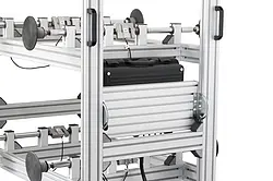 Each of these 4 force sensors can record a maximum force of up to 3t. The force is shown on the color display of the 4-point measuring carriage with a resolution of 1 kg. The force of each individual sensor and the totals of several sensors are displayed and also shown as a percentage in relation to the total force. The forces can be displayed in kg / N / kN and lb.