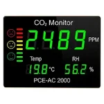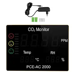 The innovatively designed CO2 analyzer is a large display for monitoring the indoor air quality. This CO2 measuring device is used specifically to monitor indoor air quality in large rooms. These include, for example, meeting rooms, lounges or public spaces such as classrooms and kindergartens. Due to the large size of 388 x 288 x 43 mm, the CO2 indicator can also be easily read from a greater distance. With the wall bracket for the CO2 indicator, the large display can also be mounted anywhere on walls.