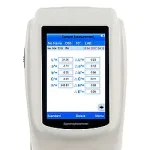 The colorimeter PCE-CSM 8 was developed for quality control, offers a high accuracy and comes with a 3.5" touch screen display. When using the colorimeter, you can choose between different colour spaces (CIE LAB, XYZ, Yxy, LCh, LUV, HunterLAB) and 45/0 optics geometry. After a measurement with the colorimeter, the reading can be used as a reference value while other readings can be recorded as a sample and later be compared to the reference value easily.