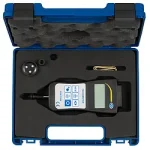 The tachometer features an integrated laser and includes a mechanical attachment with contact probes, making it the ideal measuring instrument for machines, motors, conveyor belts and other moving parts. Non-contact measurements are taken with the help of laser-reflective tape that is fixed on the moving part. Contact measurements are taken using the mechanical attachments.