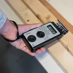 To measure, simply select either wood or building material (BUILD. MAT.) on the meter and place the meter's electrodes on the surface of the substrate. For accurate results, be sure to calibrate the instrument before each use according to the instructions outlined in the user manual.