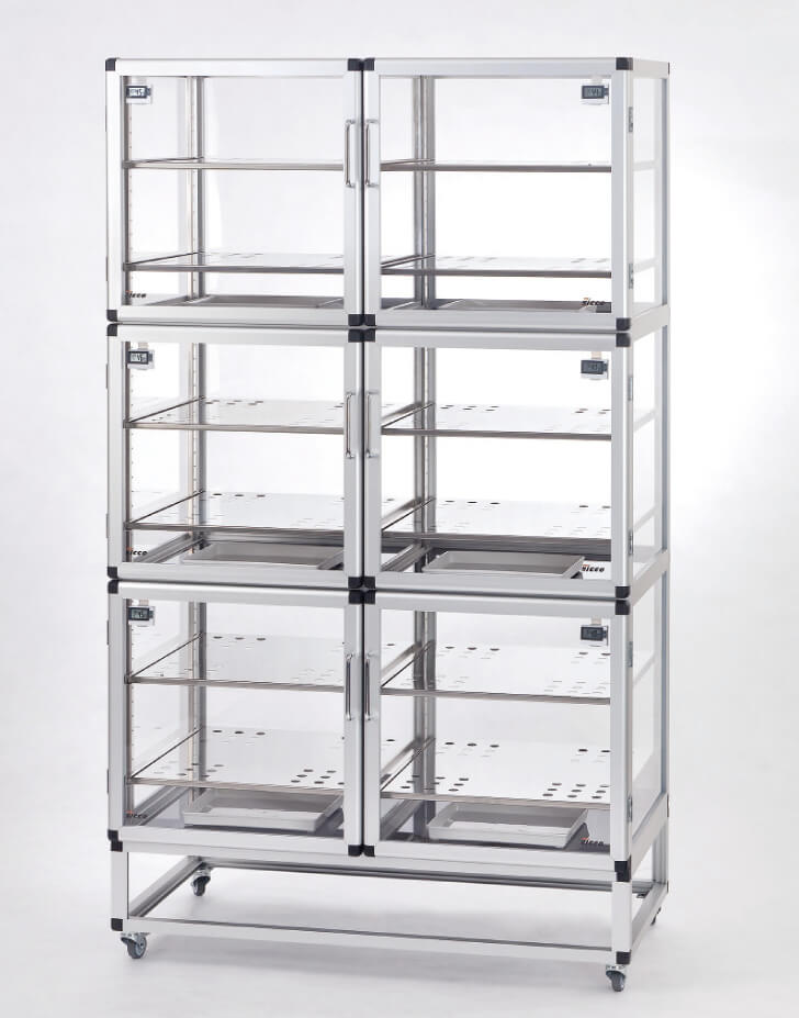 Desiccator Antistatik SICCO dapat melindungi komponen elektronik dari kelembaban dan partikel udara. Muatan elektrostatik dibuang melalui kabel pembumian dan atmosfer netral muatan tercipta di dalam desiccator. Desiccator antistatik umumnya digunakan untuk penyimpanan sementara komponen-komponen produk elektronik.