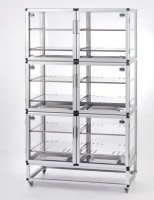 Deskripsi Produk: Desiccator Wall ini memiliki rangka aluminium yang diperkuat dengan panel-panel akrilik dan dilengkapi dengan enam kompartemen serta enam pintu. Setiap kompartemen mencakup enam rak stainless steel, enam tray, dan enam higrometer. Desiccator ini juga dilengkapi dengan empat roda (dua di antaranya dengan rem), dan dapat digunakan dengan hingga 8 rak per kompartemen. Produk ini dirancang untuk efisiensi ruang dan penanganan yang nyaman.