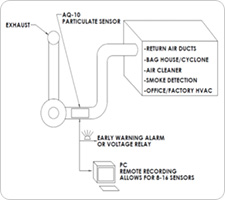 Haz-Dust™ Model AQ-10 Air Quality Particulate Sensor is a versatile transducer designed to continuously monitor for the presence of airborne particles. The AQ-10 is calibrated for OSHA and EPA regulations. Suitable for monitoring emissions from cyclone, precipitators, bag houses or any dust control device. The AQ-10 ideal for monitoring air quality in underground transportation systems, ventilation systems, indoor workplace or any other application where immediate data on smoke, dust, fumes or mists is needed.
