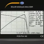The environmental meter has two different measuring functions for determining the characteristics of a solar module. In the automatic mode, the characteristic curve is created with automatic parameters by the photovoltaic meter. This gives the operator a first impression of the state of the solar module. In manual mode, the start and end of the current value can be set on the photovoltaic meter. If the area of ​​the solar module and the power of the incoming radiation are stored in W/m², the photovoltaic meter can calculate the efficiency and the fill factor of the cell. Another measuring function with the solar module tester is the one-point measurement. A specific current can be controlled and checked by the photovoltaic meter.