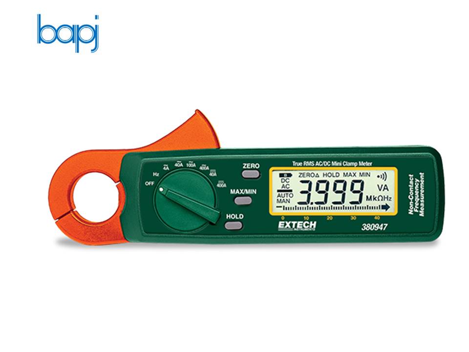 The compact Extech 380947 is a 400 Amp True RMS mini clamp meter. This meter has a small diameter jaw designed to reach in small areas while providing 1mA resolution and very low-current sensitivity. This mini clamp meter is useful for current and frequency related troubleshooting in plant maintenance, electrical, HVAC, and telecom work, as well as home electrical, fleet maintenance, marine, and motorcycle repairs. Comes with battery and manual.