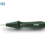 The Extech ET38 is a compact size AC Voltage/Continuity Tester with a 12 to 300 V AC voltage detection range. It has an LED light indicator and includes a built-in screwdriver tip, pocket clip, and two button batteries.
