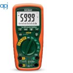 Designed to withstand harsh environments and usage, the meter's rugged, double-molded housing is IP67-rated (waterproof and dustproof) and drop-tested to 6 ft. The large, illuminated LCD displays 4-digit readout (to 6,000 counts). The EX520 offers various must-have measurements. The meter features 0.09 percent accuracy and a CAT IV 600-volt safety rating, protecting users even on outdoor wiring. Product includes a 3 year warranty, double molded test leads, 9V battery, magnetic hanging strap, temperature probe and carrying case.