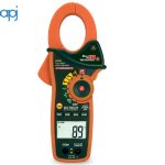 This CAT IV True RMS clamp meter features a built-in IR thermometer with laser pointer for non-contact surface measurements from -58 to 518 °F (-50 to 270 °C). Clamp measures AC current up to 1000 Amp with a maximum resolution of 0.1 Amp. The 1.7-inch jaw fits around conductors up to 750MCM. Peak hold captures motor inrush currents and other surges. Data hold and auto power off functions. Other functions include AC/DC Voltage, resistance, Type K thermometer, capacitance and frequency. Complete with test leads, Type K temperature probe, 9 Volt battery and case.