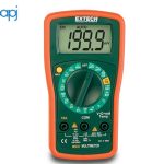 The MN35 is a convenient mini size multimeter with protective rubber holster and tilt stand. Manual ranging, measures AC and DC Voltage to 600V, Resistance with Continuity and Diode functions, DC Current to 10A, Temperature, and 9V/1.5V Battery test. Includes protective rubber holster, 9V battery, test leads and Type K thermocouple probe.
