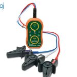 The Extech PRT200 is a non-contact phase sequence tester with a 75 to 1000 VAC input voltage and 45 to 65 Hz frequency range. This tester features LEDs that indicate whether each phase is live and that phase's orientation; a beeper sounds intermittently when correct phase is detected and continuously if phase is reversed. An adjustable Hi/Lo LED brightness switch makes it easy to take measurements in dimly lit areas or sunlight, while the CAT IV 600 Volt safety rating plus fully-insulated, wide-jaw alligator clips mean it's appropriate for industrial applications. The PRT200 comes complete with a year warranty, three built-in 30 in. test leads with large color-coded alligator clips, 4 AA batteries, and a pouch case.