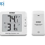 Extech’s RH200W Multi-Channel Wireless Hygro-Thermometer displays indoor temperature and humidity levels. You can connect up to eight wireless transmitters to remotely measure temperature and humidity levels up to 30 m (98 ft) away. The LCD displays icons that indicate indoor comfort levels as well as trending arrows that show the increase, decrease, or constant readings. It also records min/max measurements for the duration of each measurement session. Ideal for multi-room environmental monitoring for restaurants, manufacturing facilities, offices, homes, greenhouses, and storage/archive buildings.