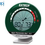 The Extech RH35 monitors humidity, temperature, and dew point from the previous 24 hours. It then alerts users to indoor mold hazard conditions starting with a frown icon warning if humidity reaches 60% RH. If the RH exceeds 65%, a loud audible alarm and bright flashing red LED will be triggered. The frown icon will also appear if the environment is too dry (<40% RH) where static electricity becomes a concern. The RH35 is perfect for commercial, retail and residential sites prone to mold. Complete with stand and 2 AAA batteries.