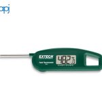 The ExtechTM55 is a Pocket Fold-Up Food Thermometer. This compact stem thermometer with a 61 mm (2.4 in) stainless steel probe is NSF certified for measuring liquids, pastes, and semi-solid food. Measures -40°C to 250°C (-40°F to 482°F) with ± 0.5°C (1°F) accuracy. Complete with a built-in magnetized strip that can attach to refrigerators and a CR2032 battery.