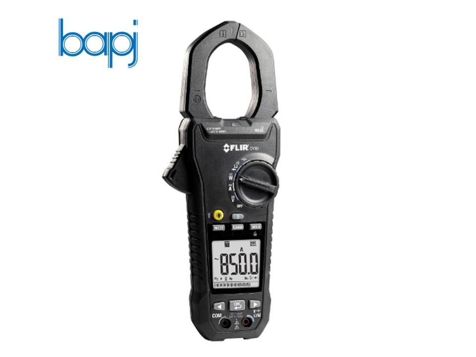 The FLIR CM85 is an industrial power clamp meter with advanced power analysis and variable frequency drive (VFD) filtering functions required by electrical troubleshooters for full-scale equipment. The CM85 helps users accurately analyze voltage in complex machinery by including harmonics, inrush, current, and phase rotation testing. The meter also features Bluetooth® for remote viewing and data sharing from compatible mobile devices, and METERLiNK technology to wirelessly embed readings into infrared images on compatible FLIR cameras.